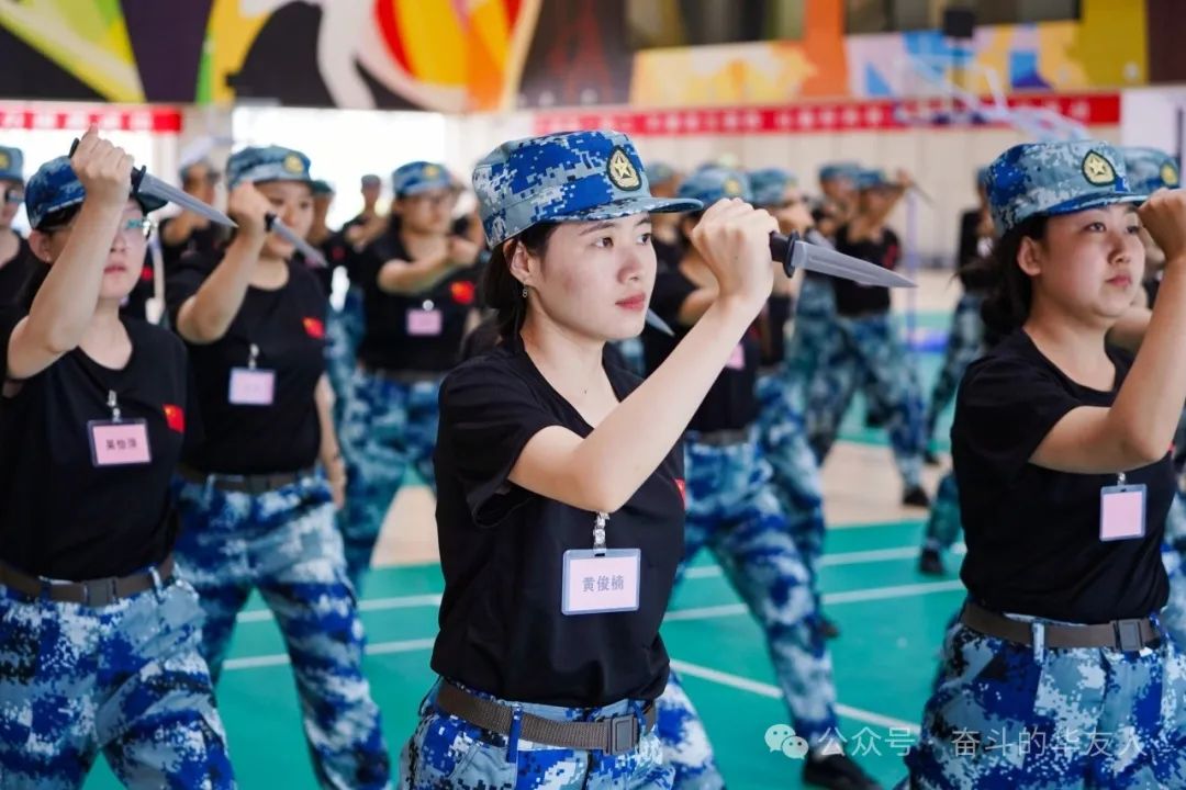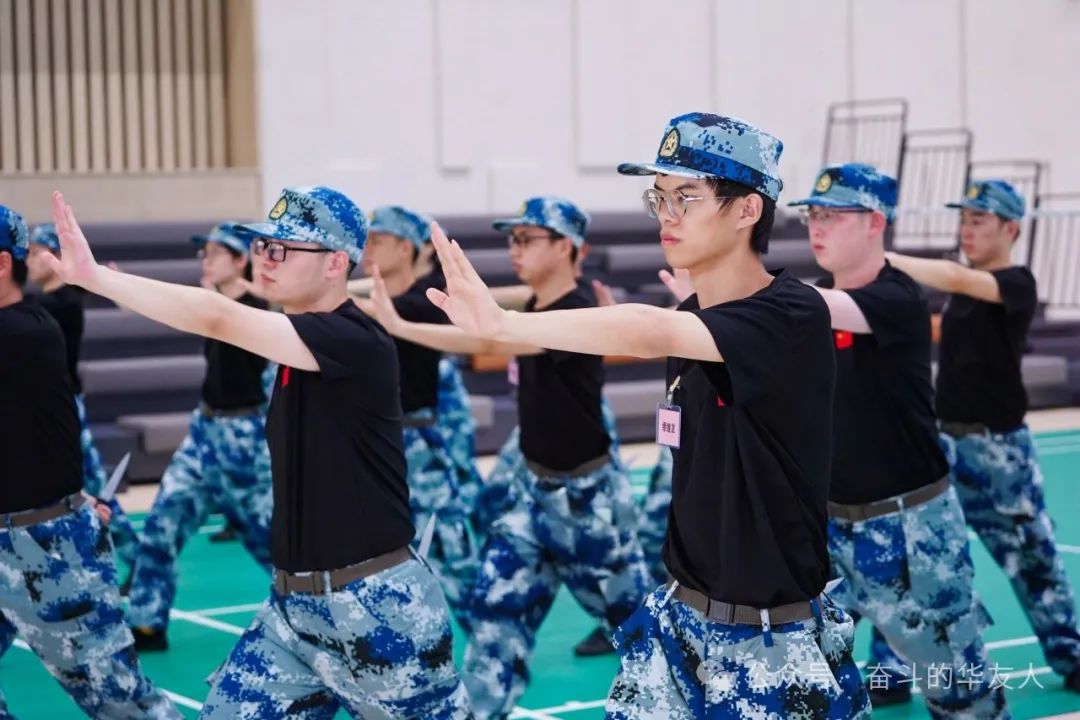 隨著軍訓(xùn)的深入,學(xué)生們學(xué)習(xí)了軍體拳和匕首操。這些訓(xùn)練項(xiàng)目不僅要求學(xué)生們展現(xiàn)出力量,更要求他們掌握技巧和節(jié)奏。軍體拳訓(xùn)練,每一次出拳、每一次跨步,都是對自我控制力的挑戰(zhàn);匕首操方陣,新人們橫砍豎削,所向披靡,都體現(xiàn)出沖鋒陷陣的果敢豪氣。