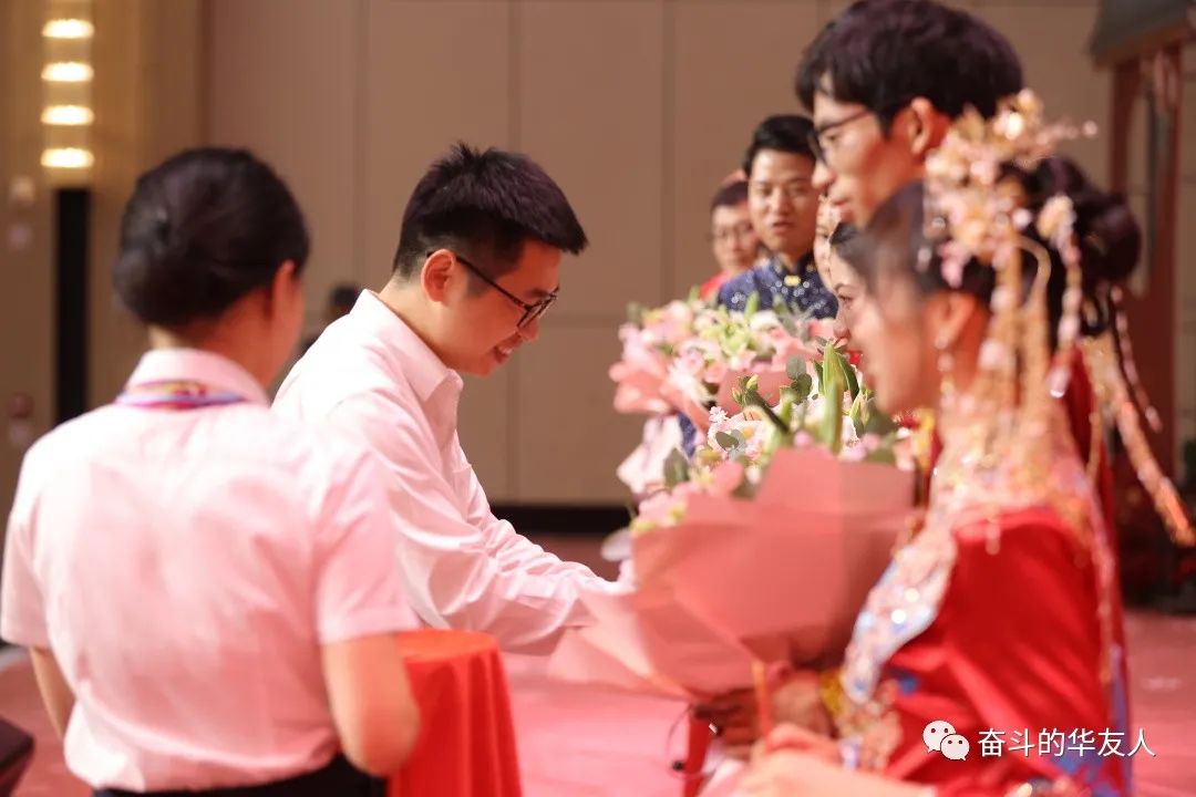會場上集團副總裁、華友衢州產業園黨委書記方圓為新人做了證婚儀式,祝福新人和美一生;集團總裁助理、新能源產業集團副總裁李天成為新人送上了鮮花,祝福新人百年好合;集團副總裁、新材料產業集團總裁徐偉代表公司為新人送上祝福紅包,祝福新人琴瑟和鳴;華友衢州產業園工會主席陸熙明代表工會為新人送上了賀禮,祝福新人長長久久;共青團衢州市委書記童舟致賀詞,祝愿新人恩愛一生共白頭。