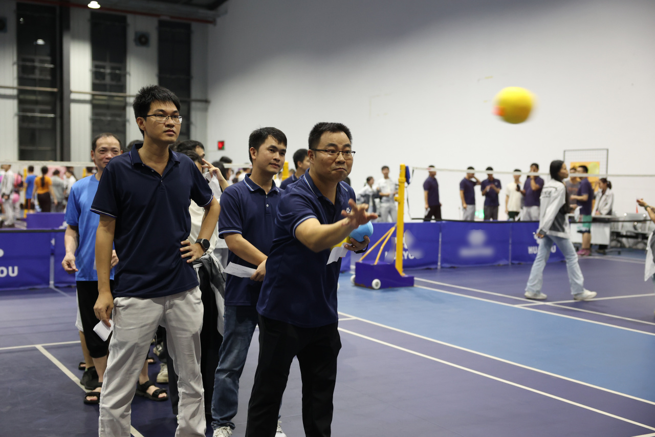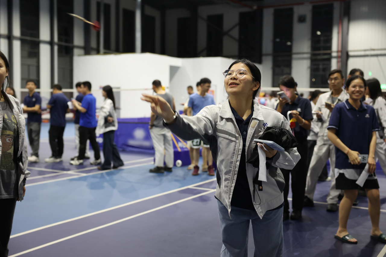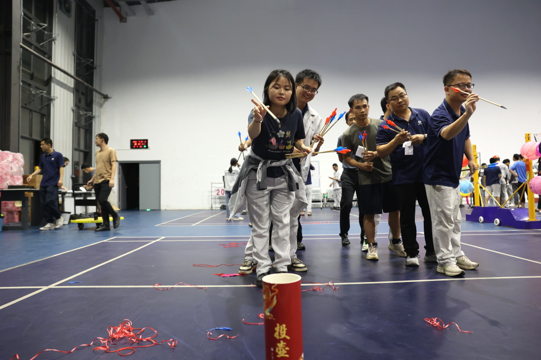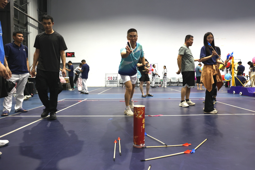 活動現(xiàn)場,員工們手持游戲卡,穿梭于各個項目之間,或凝神思考,或精準(zhǔn)投擲,或活力碰撞,加油聲、喝彩聲、歡笑聲匯成一片,將現(xiàn)場氣氛不斷推向高潮。