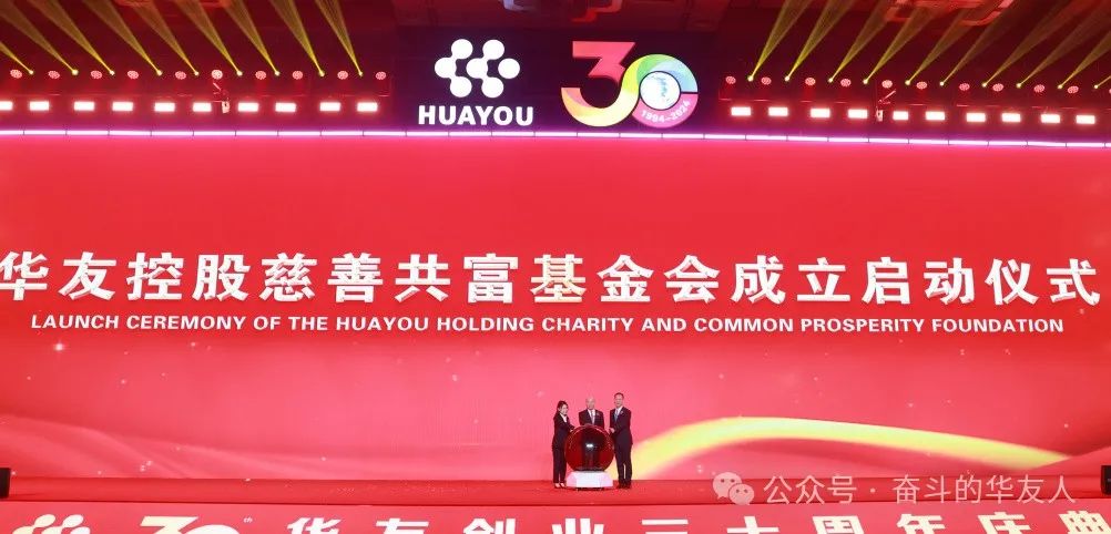 The celebration concluded with the official launch of the Huayou Holding Charity Foundation for Shared Prosperity. Chairman Chen Xuehua, Vice-Chairman Chen Xiaolin, and President Chen Hongliang jointly pressed the activation ball, symbolizing the transmission of love and responsibility.