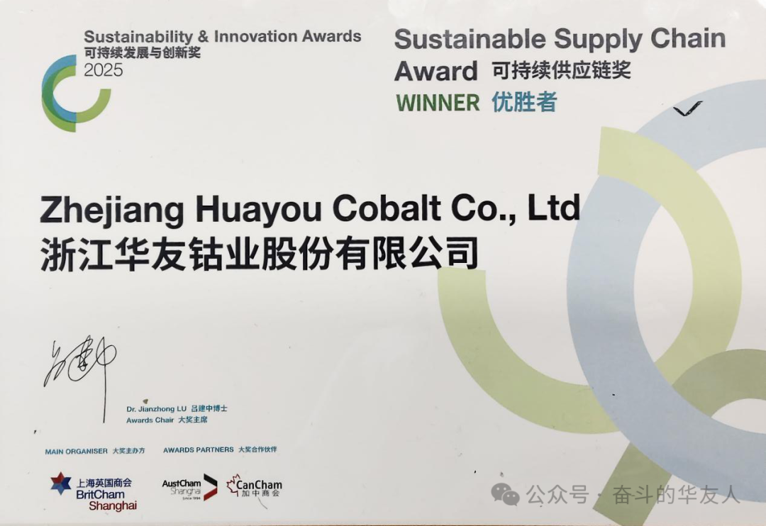 Leading Green Supply Chain: Huayou Cobalt Wins the 2025 Sustainable Supply Chain Award