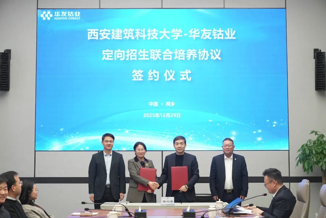 Recently, Huayou Cobalt and Xi'an University of Architecture and Technology held a school-enterprise cooperation signing ceremony for international student order classes and joint cultivation programs for domestically directed admissions.
