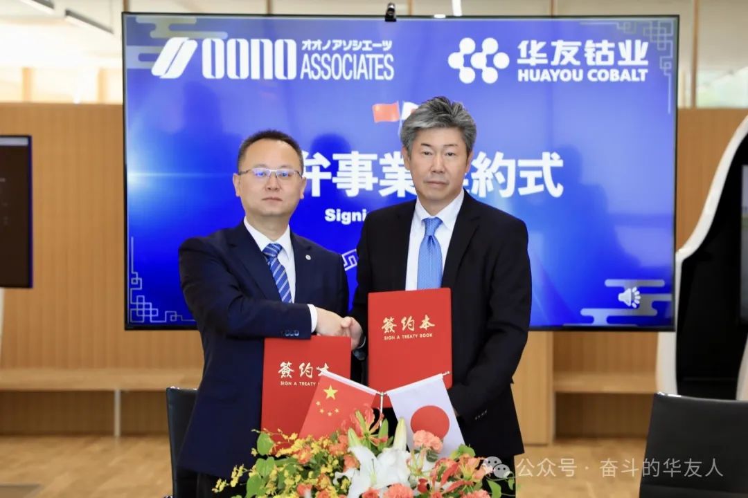 為構(gòu)建產(chǎn)業(yè)鏈協(xié)同格局,打通海外循環(huán)路徑。5月14日,浙江華友循環(huán)科技有限公司(以下簡稱“華友循環(huán)”)與日本大野開發(fā)股份有限公司(以下簡稱“大野開發(fā)”)在大野開發(fā)日本松山市總部正式簽署合資協(xié)議。大野開發(fā)集團(tuán)社長山下、華友鈷業(yè)副總裁級干部張炳海、華友循環(huán)總經(jīng)理鮑偉出席簽約儀式。