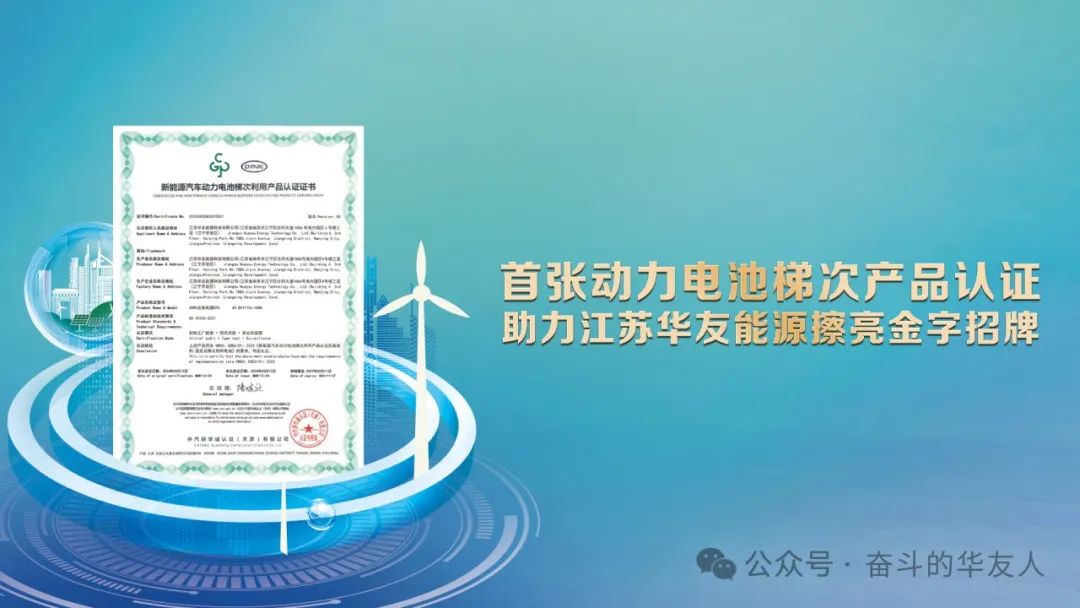 今年3月,江蘇華友能源梯次電池產品獲得由中汽研華誠認證(天津)有限公司頒發的國內首張新能源汽車動力電池梯次利用產品認證證書,開啟了我國新能源汽車動力電池梯次利用產品認證制度的元年,獲得產業鏈上下游企業的廣泛關注。此次合作,平安產險北京分公司將為經過認證的江蘇華友能源梯次利用產品提供產品責任險,為產品的推廣和應用提供有力的保障,通過綠色保險護航綠色產業發展。