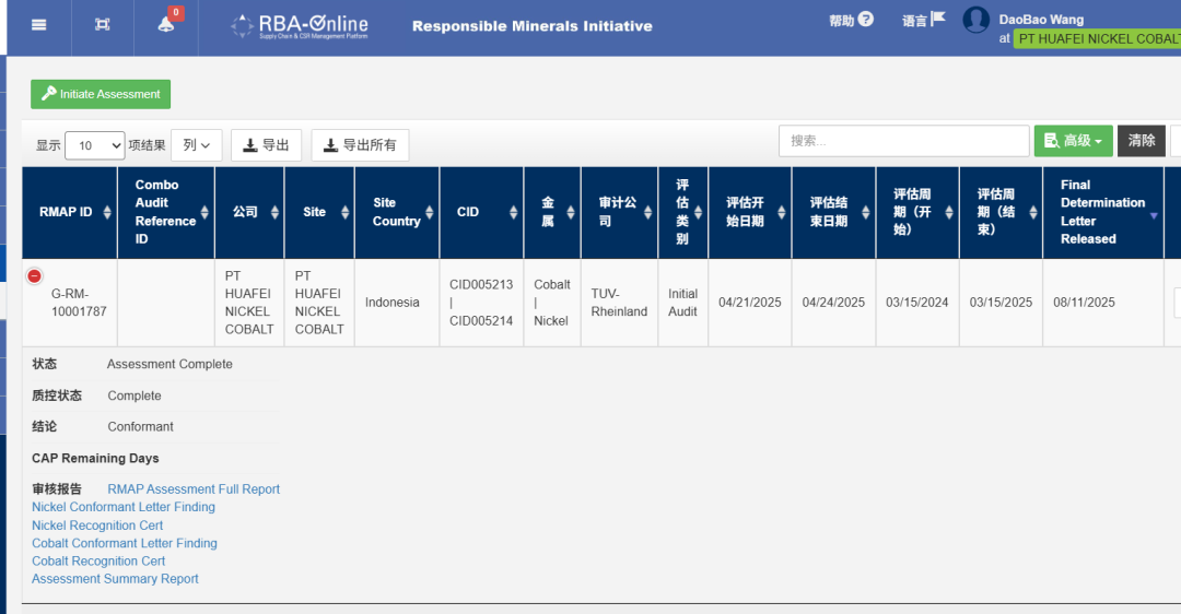 8月,負(fù)責(zé)任礦產(chǎn)倡議(The Responsible Minerals Initiative,簡稱RMI)官方網(wǎng)站發(fā)布消息,華飛鎳鈷(印尼)有限公司成功通過負(fù)責(zé)任礦產(chǎn)保證流程(Responsible Minerals Assurance Process,簡稱RMAP)審核,華飛成為印度尼西亞同時對鎳、鈷金屬供應(yīng)鏈開展礦產(chǎn)供應(yīng)鏈盡責(zé)管理并通過 RMAP 審核的冶煉企業(yè)。