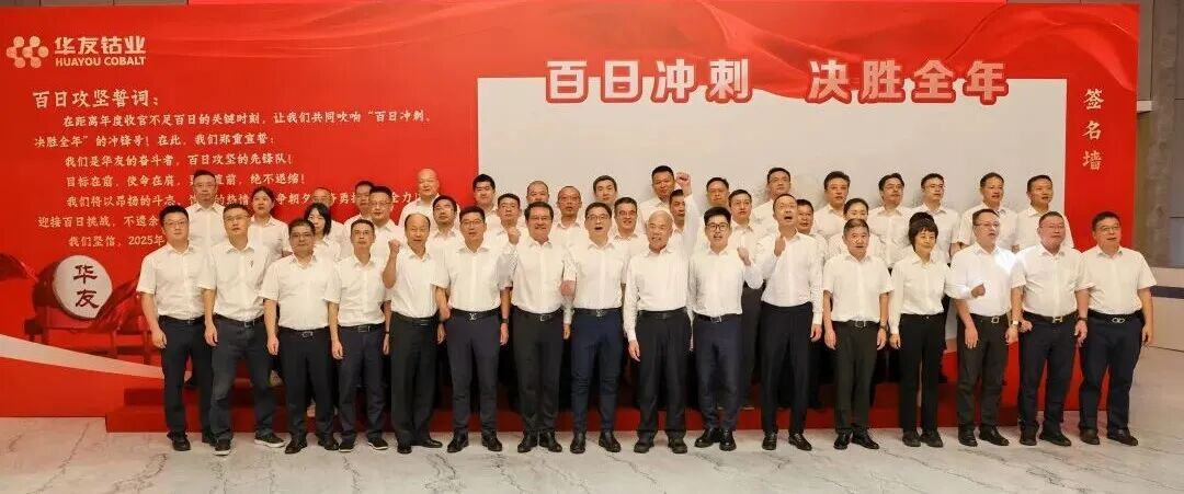 “我承諾:百日沖刺、決勝全年!華友必勝!必勝!必勝!”全體干部在陳雪華董事長帶領(lǐng)下莊嚴宣誓,并在簽名墻鄭重簽名。一筆一劃,皆是使命;一字一句,滿載擔(dān)當(dāng),凝聚成“使命必達”的華友力量!