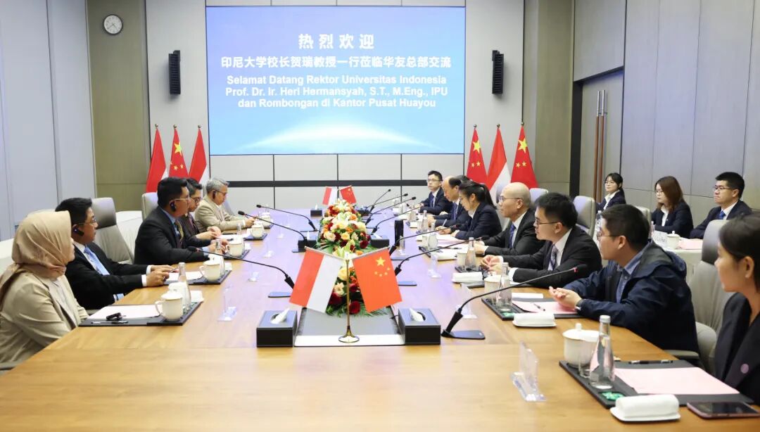 陳雪華董事長對賀瑞教授一行的來訪表示歡迎和感謝。陳董講到,華友與印尼相互成就,共同成長,華友把資源投入、技術引入、社區共榮深度融合,在產業、環保、教育、公益等多維度與印尼攜手共進。印尼大學作為印尼頂尖高等學府,在學科建設、科研創新、人才培養、區域發展等方面享譽全球,其開放包容的學術胸襟與華友倡導的跨國界、跨文化合作理念高度契合,希望在未來,華友與印尼大學在人才培養、技術研發等領域深化合作,為印尼優秀人才培養和國家經濟社會發展貢獻力量。