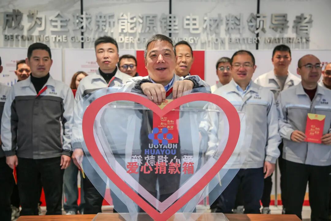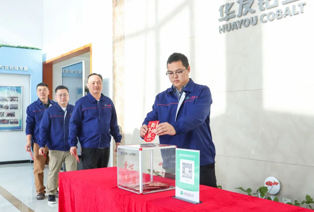 倡議聲落,愛(ài)心涌動(dòng)。公司總裁陳紅良率先將滿(mǎn)載著愛(ài)心與期許的紅包投入捐款箱,以實(shí)際行動(dòng)引領(lǐng)公益之風(fēng)。隨后,各干部員工依次上前,鄭重地將凝聚著自己心意的善款投入捐款箱,一筆筆善款,是華友人對(duì)同伴的牽掛,是對(duì)社會(huì)的責(zé)任;一顆顆愛(ài)心,是馬年開(kāi)工最動(dòng)人的底色,是華友精神最生動(dòng)的詮釋。